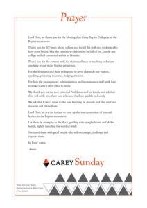 Charles Hewlett, the National Leader of the Baptist Union of New Zealand, has written a short prayer for use on Carey Sunday. Would you, or one of your team, be willing to include this in your worship that day?